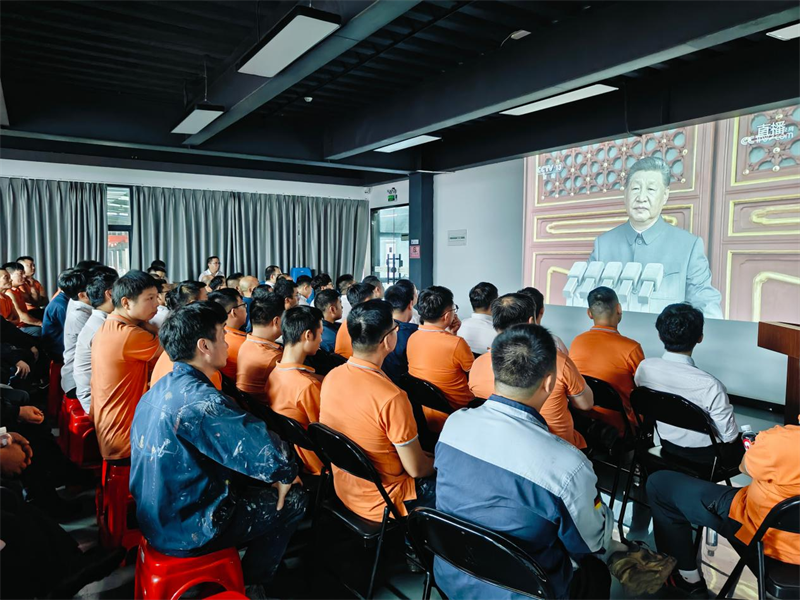 當(dāng)雄壯的國歌聲響起,鮮艷的五星紅旗冉冉升起,所有職工自覺起立,高唱國歌。受閱部隊(duì)步伐鏗鏘,現(xiàn)代化裝備列陣而來,大家情不自禁報(bào)以熱烈掌聲,民族自豪感油然而生。許多員工表示,閱兵儀式不僅展示了國家強(qiáng)大的國防實(shí)力,更激發(fā)了大家立足崗位、精益求精的奮斗熱情。