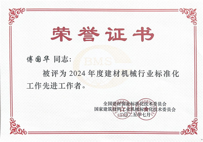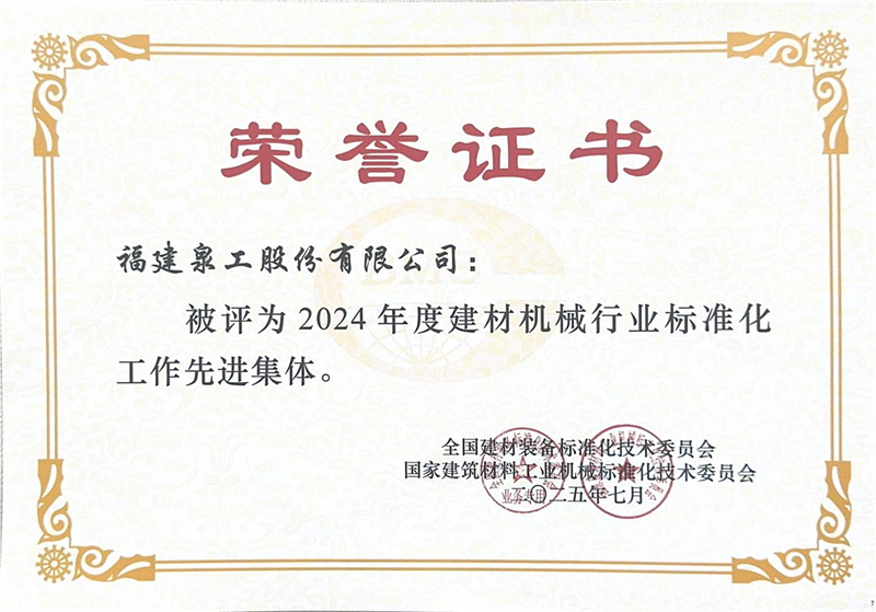 在同期舉行的表彰環(huán)節(jié)中,泉工股份被授予“2024年度建材機械行業(yè)標準化工作先進集體”稱號,公司副總經理傅國華榮獲“2024年度建材機械行業(yè)標準化工作先進工作者”稱號。